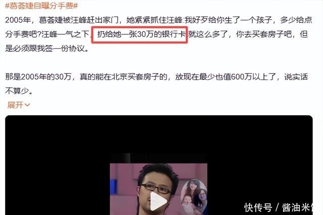 真是一点面子也没给人家留啊,除此之外她还曝料汪峰给她的分手费,