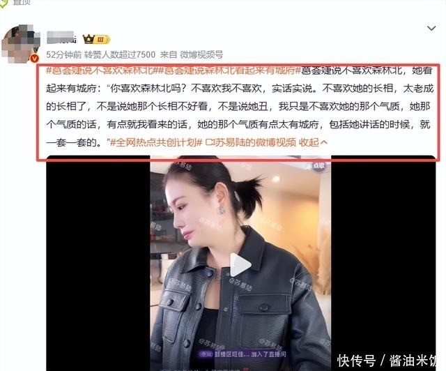 而森林北她也直言不讳的表示自己不喜欢她,看上去城府很深的样子,不喜欢她的长相。